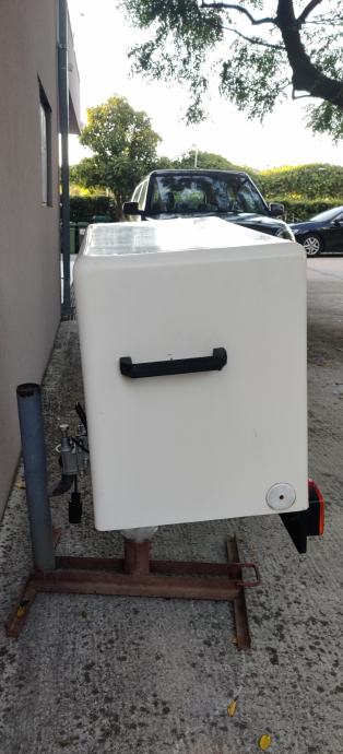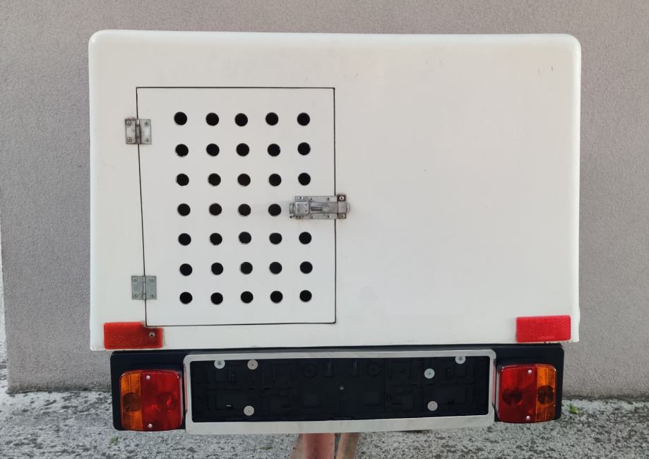 Prodajem box od stakloplastike dimenzija 85x45x53 (ŠxDXV) na originalnom postolju od Unitech Evolution nosača za 2 bilcikle, sa ugrađenim nosačem za registracijsku oznaju i svjetlosnu signalizaciju. Unutrašnjost boxa ima odljeve te napravljenu podnicu od drvenih letvica koja se može vaditi. Sve radi bez greške i 100 % ispravno. Box se tvornički može jednostavno nageti kad se puste psi te se time ne gubi pristup gepeku.