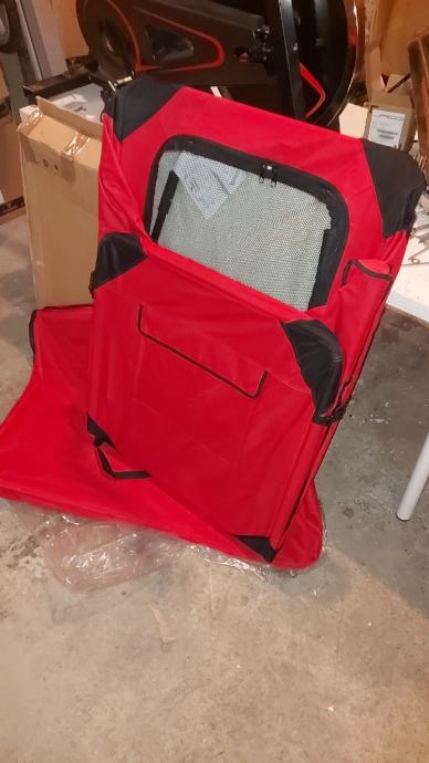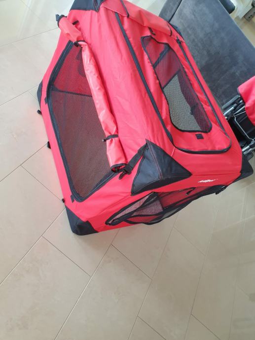 Prodajem transportni box za pse u top stanju sa tri otvora za ulaz i krovnim otvorom i sa dodatnim pretincima.Metalni okvir radi stabilnosti.