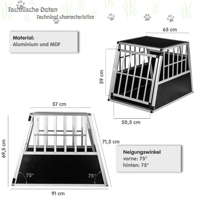 Informacije o proizvodu "PETSTUFF® aluminijska transportna kutija za pse L stražnja stijenka 75°"