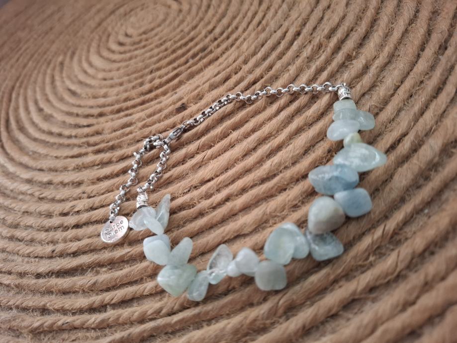Materijali...poludragi kamen - aquamarine, celik lanac, detalji - tibetansko srebro