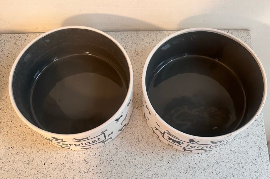 Porculanske bijele (iste boje) zdjelice širine 19,5 cm, visine 7,5 cm. Svaka po 2 € .