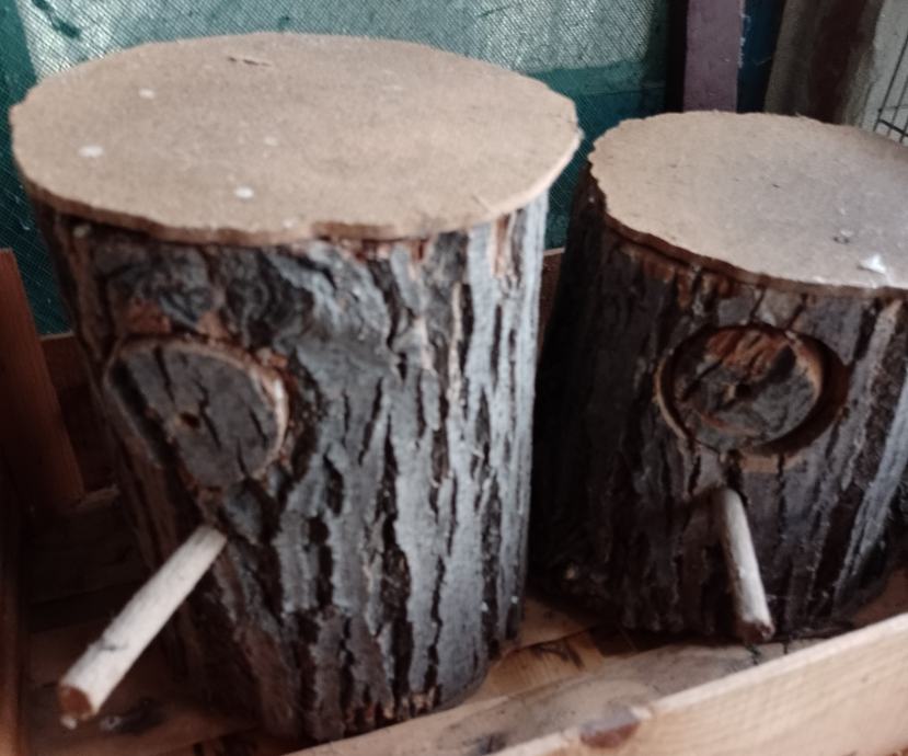 Drvena gnjezda iz debla, 4 kom, dimenzije, veće, V-25 x Š-19 cm, 2 kom, i manje V-20 x Š-20 cm, 2 kom, nove, prodajem za: