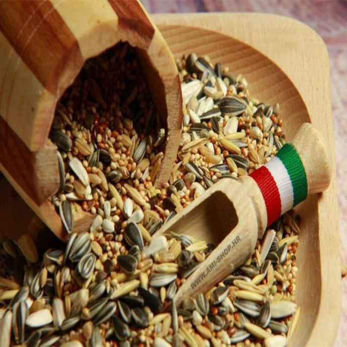 Sastav: bijeli , žuti i crveni proso , ljuštena zob , šareni suncokret , kanari sjeme , riža , bijeli suncokret , kardi , heljda , pšenica , konoplja , lan , niger , repica