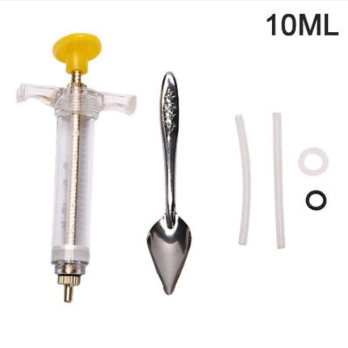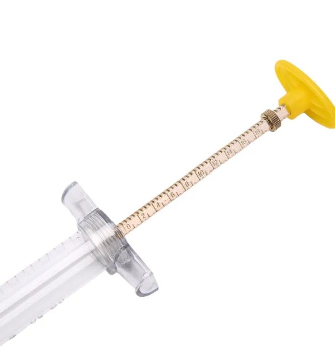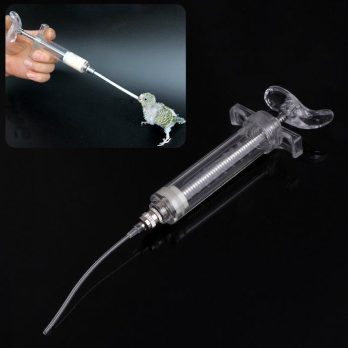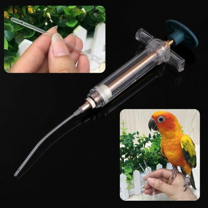 Sa slike, injektor hranilica sa tankim i mekim nastavkom(cijevčicom) za hranjene mladih ptića. Sa označenim ml. Univerzalna, za sve vrste ptica.