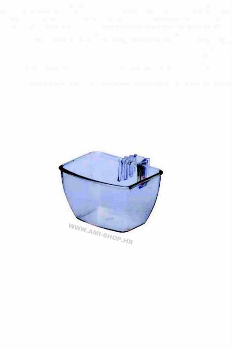 Prozirna hranilica ili pojilica opremljena montažnim držačem koji se prilagođava različitom razmaku žice u kavezu