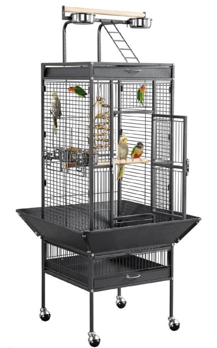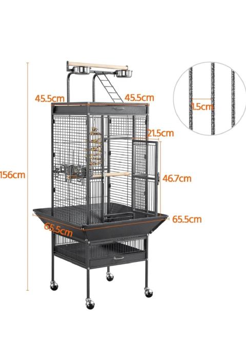 Ultra čvrsta konstrukcija: Naš iznimno veliki kavez za ptice izrađen je od visokokvalitetnog metala i obojen netoksičnom bojom. Zavareni okvir i izvrsna otpornost na hrđu i vodu čine ovaj kavez za papige izdržljivim i sigurnim domom za kućne ljubimce visoke kvalitete. Ukupne dimenzije: cca. 65,5 x 65,5 x 156 cm (D x Š x V)