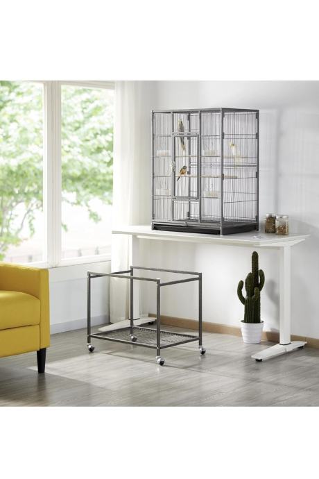 Idealan za svaki dom: zahvaljujući praktičnim kotačima, mobilan i slobodno pomičan. Dodatna polica ispod kaveza pruža dodatni prostor za pohranu. Dodatne razine također su prikladne za postavljanje drugih predmeta u unutrašnjost kaveza