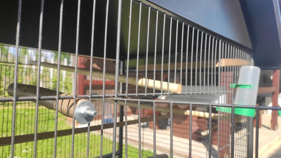 Prostrani robustan kavez/volijera nudi udobnost koja odgovara svim vrstama. Zbog malog razmaka mreža, kavez je pogodan za držanje manjih ptica dok veličinom odgovara i velikim. Dvostruka velika pravokutna rešetkasta vrata omogućuju jednostavan pristup. Podne rešetke i pješčanik mogu se lako ukloniti i očistiti. Kavez je na kotačima s kočnicama. Korišten vrlo malo, doslovno tri dana u tri godine otkad je kupljen.