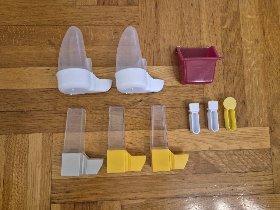 Od starog transportnog kaveza, žica, ladica, dvije hranilice, super za zamjenit kad se uprlja na novom transportnom. Dodatne dvije hranilice od još jednog starijeg prvog transportnog kaveza.