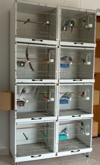Prodajem veliki kavez za tigrice. U odličnom stanju. Prodajem bez ptica. Sastoji se od 8 odvojenih kaveza koji se mogu spojiti u 4 veća kaveza jer se pregrada može izvući. Ima i ladice za lakše čišćenje.