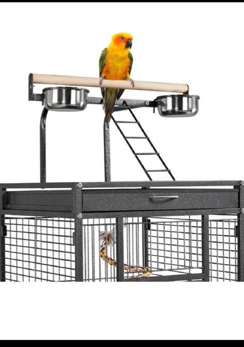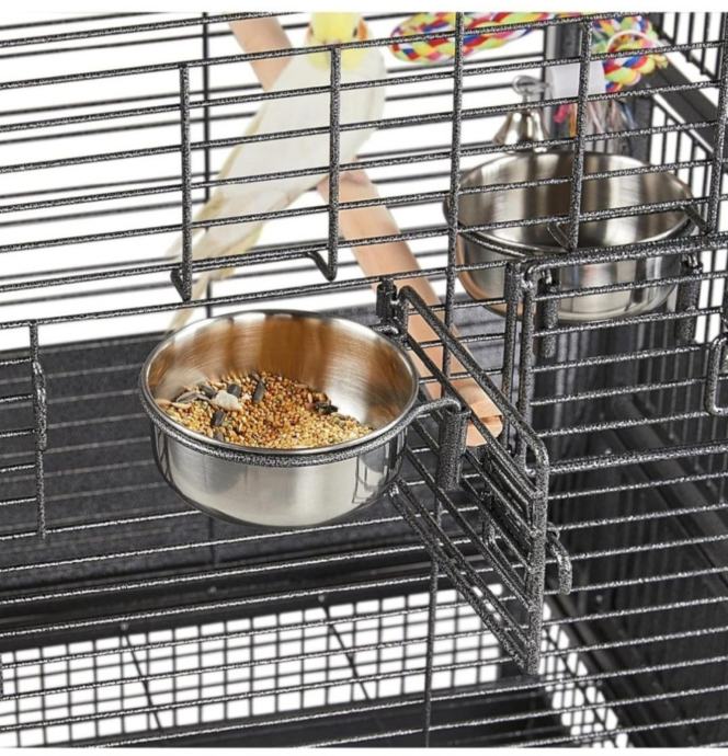 Uz kavez dolaze posudice za hranu i vodu od čelika i prečke drvene