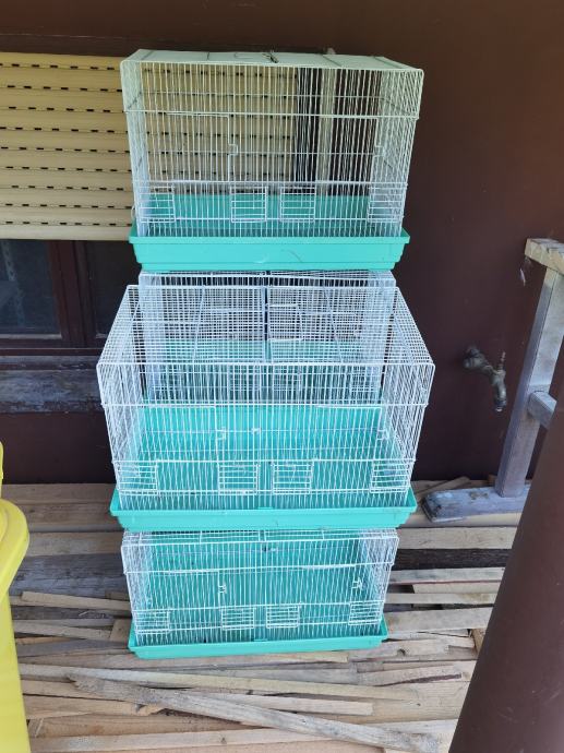 Hranilice i pojilice i stajalice idu uz kaveze... Prodaju se navedeni kavezi Zeleni dimenzije 54x40x28 20eura komad