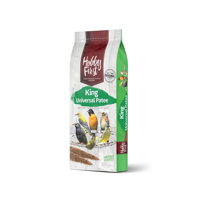 KING Universal patee je kompletna hrana za ptice koje se hrane insektima i voćem , grublje strukture što omogučuje da je ptice lakše absorbiraju. Sadrži sve potrebne hranjive tvari koje su neophodne za vaše ptice.