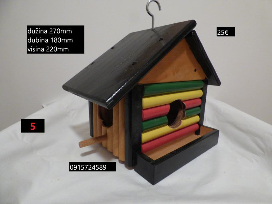 Kućica i hranilica za ptice. Izrađeno od jelovine-bukovine. Krov obojen za zaštitu. Sve kućice zaštićene izvana (iznutra čisto drvo)
