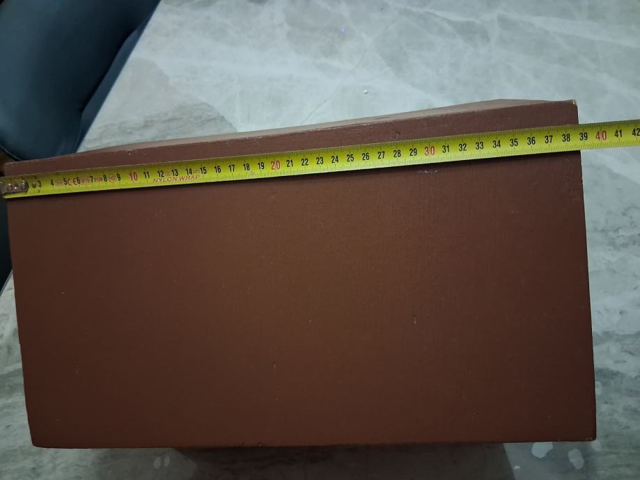 Dimenzije su: sirina prednje strane 32 cm, visina 27 cm, duzina 39 cm, kruzni otvor promjera 8 cm, mjere se vide na slikama.