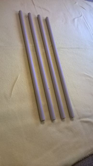 Prodaju se četiri duže plastične rebraste cijevi za stajanje ptičica.