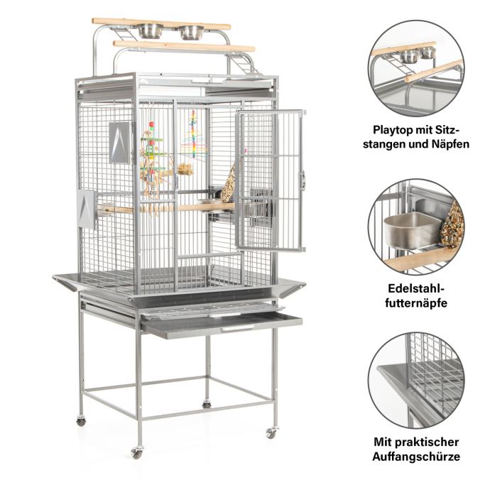 Pribor : 3 zdjele od nehrđajućeg čelika, 1 drvena prečka, Playtop (2 zdjelice od nehrđajućeg čelika, 2 drvene prečke), kolektor za sjemenke, rešetka za dno