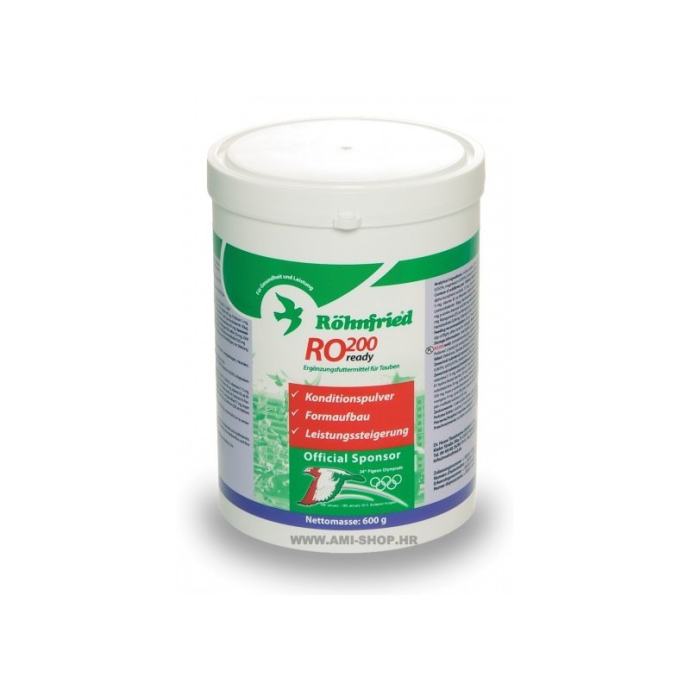 RO200 Ready sadrži: probiotike, elektrolite, aminokiseline, energetske sastojke, minerale, esencijalne elemente, multivitamine, ukratko sve što treba golubu za odličnu formu , mješavina vrhunske kvalitete.