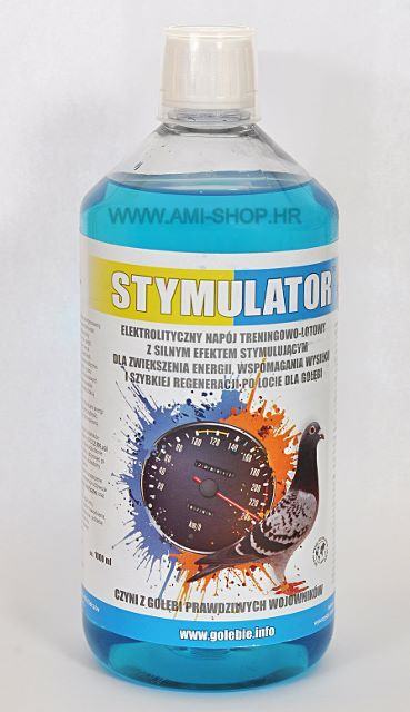 Formula od preko 18 aktivnih sastojaka sa visokim sadržajem vitamina B12 (2000mg) i taurina je odgovorna za jaku stimulaciju i energiju golubova.STYMULATOR smanjuje osječaj žedji i potrebu za vodom tijekom leta.