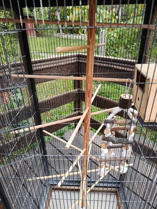 Prodajem visoki kavez (volijeru) za papige ili druge ptice. Kavez je visine 150 cm, dimenzije 50 x 60 cm, drvenog okvira, s ladicom za lakše čišćenje i kućicom.