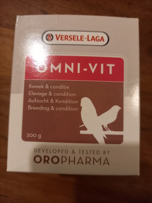 Omni-vit prah. Dodatak prehrani za ptice. Mješavina vitamina i aminokiselina. Pakiranje od 200 g. Nije korišteno niti otvarano. Rok trajanja je na priloženim slikama.