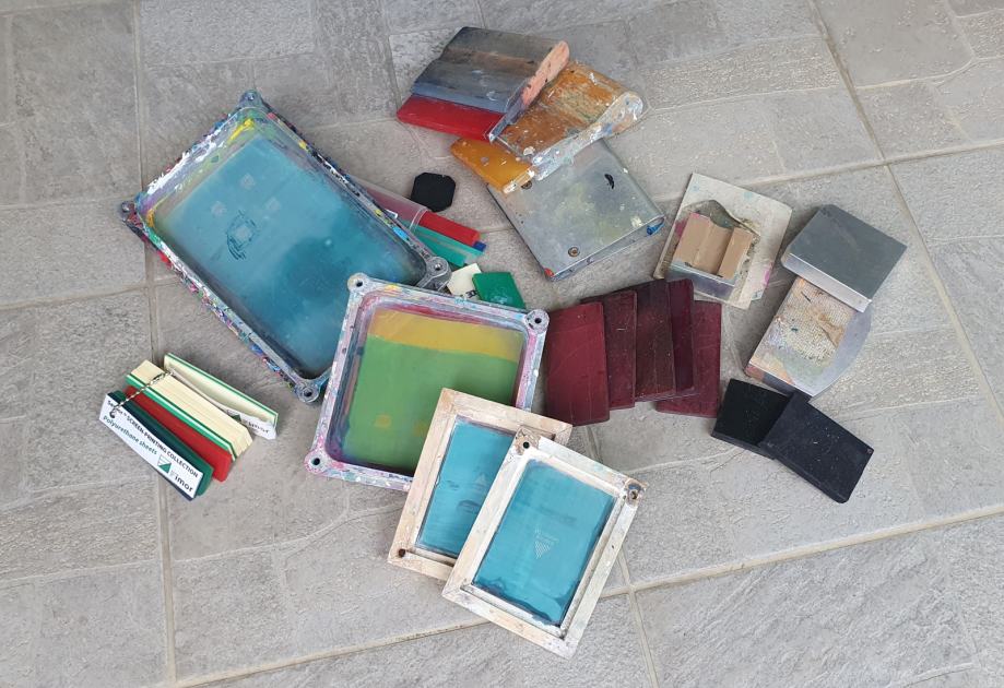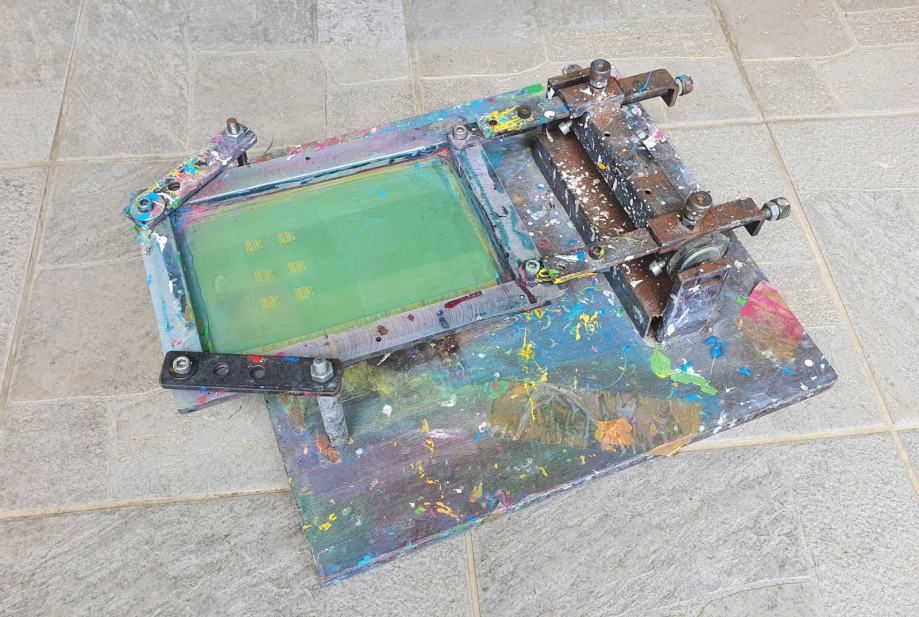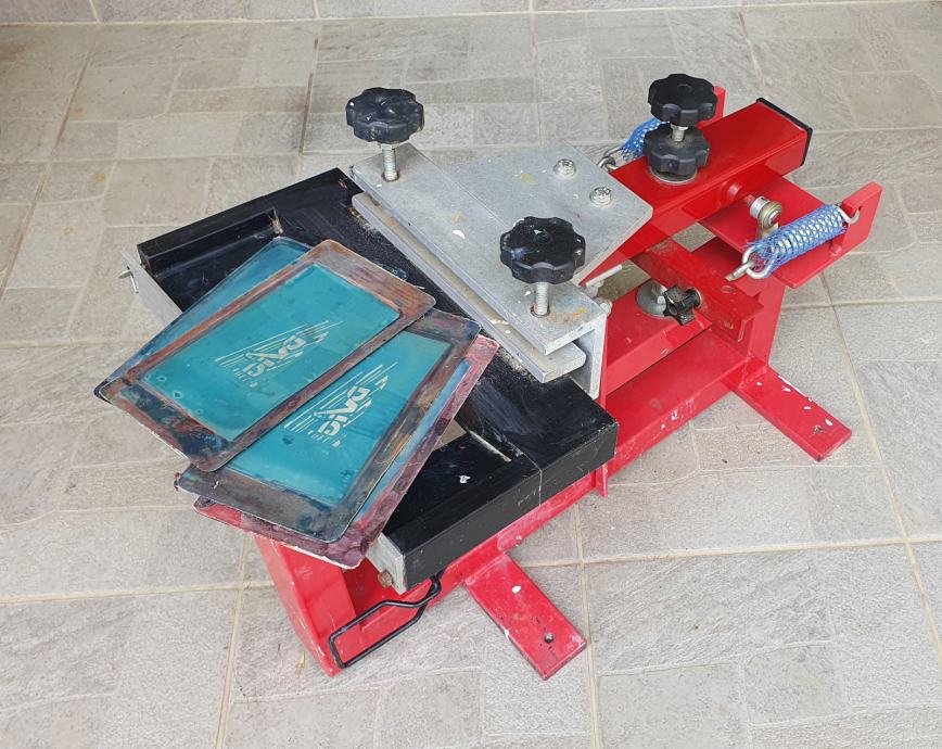 Zbog nekorištenja prodajem ručni uređaj za sitotisak za kape. Dodajem i manji ručni uređaj za sitotisak sa klasičnim ravnim sitima i raznim dodacima i okvirima dimenzija - 2x 14x21cm, 1x 14x20cm, 1x 13x13cm i 2x 7x10cm.