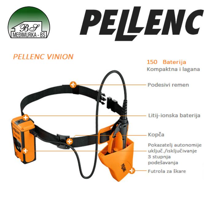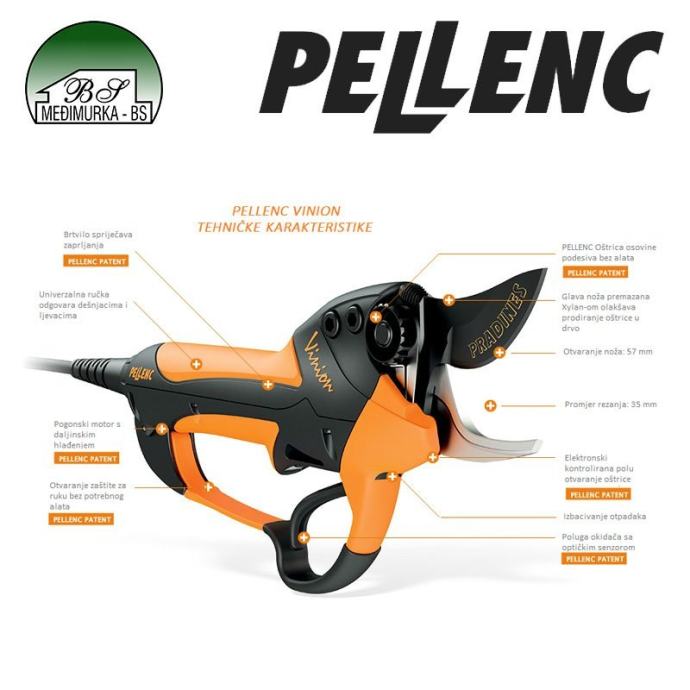 Vinion 150 akumulatorske električne škare tvrtke PELLENC razvijane su od strane njihovih tehničara punih 5 godina i trenutno su to najinovativnije vinogradarske i voćarske baterijske škare na tržištu. Vinion 150 akumulatorske voćarsko-vinogradarske škare izvrsno će poslužiti kao škare za masline, voćke, vinogradovu lozu i mnoge druge radnje u vrtu ili na polju. Rezidba s Pellenc akumulatorskim električnim škarama pravi je užitak, a podobne su i kao škare za grane.