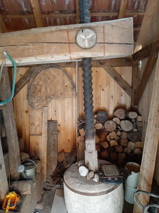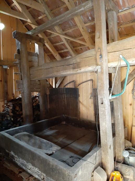 Prodaje se starinska drvena preša za grožđe, ukupnih dimenzija 6*4 metara, u dobrom stanju, izgrađena od hrastovine.
