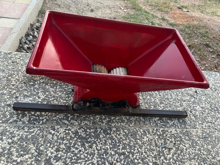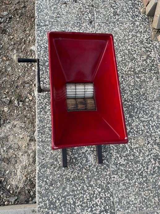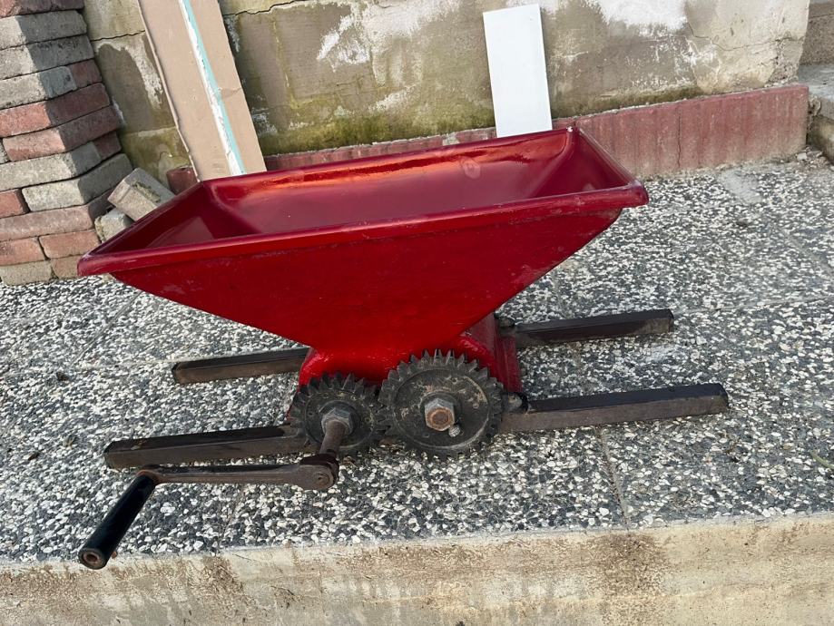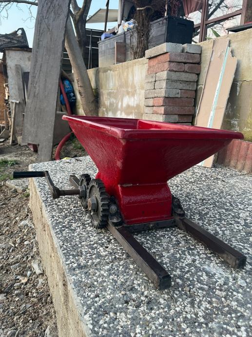 Prodajem ručnu muljaču za grožđe u vrlo dobrom stanju. Idealna za kućnu proizvodnju vina ili preradu voća. Jednostavna za korištenje – grožđe se ubacuje u lijevak, a okretanjem ručke valjci ga muljaju.