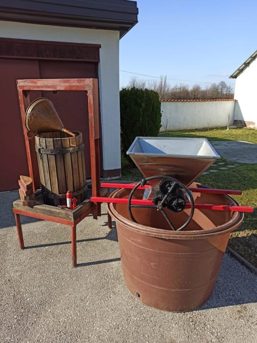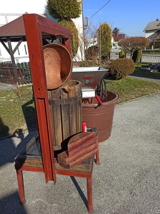 PREŠA ZA GROŽĐE - koš 120 L, babina obložena rostfrajem 80x80 cm s pripadajućom opremom za prešanje (hidraulična dizalica 3t + drvene klocne i poklopac), dobro očuvana --> 400 €
