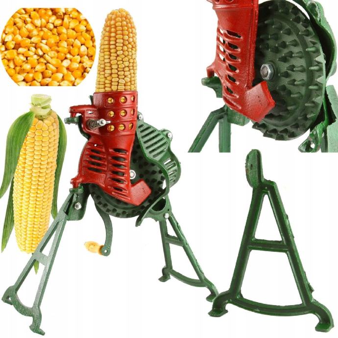 Jednostavno postavite ljuštilicu pomoću priloženih nogu na odabranu ravnu površinu (na primjer, stol), a izlaz usmjerite prema posudi za oljušteni kukuruz. Zatim stavimo klip kukuruza u izduženu komoru i pomoću poluge pokrenemo proces ljuštenja . Nakon što je ljuštenje završeno , uklonite prazan klip i stavite drugi , puni klip .