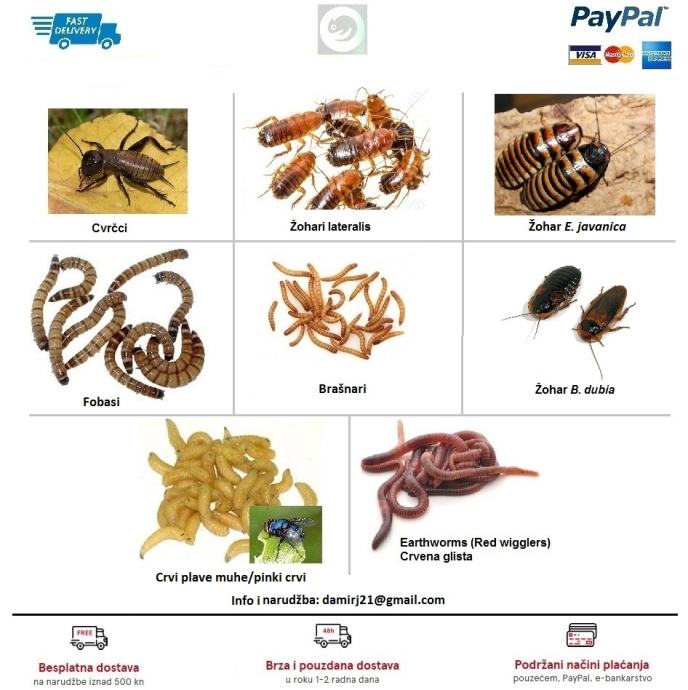 Mikro hrana za mlade i vrlo male životinje, po izboru ovisno o dostupnosti (brašnari, lateralisi, cvrčci, dubije, drosophila) - 5€ (0,5pak)