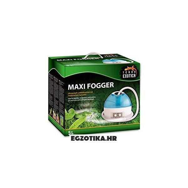Terra Exotica Maxi Fogger idealan je za vrste koje zahtijevaju visoku vlagu u terariju. Posebno životinje iz tropske kišne šume trebaju visoku vlažnost. Terra Exotica Maxi Fogger također ima ionizator koji smanjuje rast bakterija i stoga može spriječiti bakterijske infekcije. Uređaj je karakteriziran visokim performansama, koji može istovremeno ovlaživati nekoliko terarija s odgovarajućom vlagom. Maxi Fogger djeluje izvan terarija i time izbjegava izravni kontakt sa životinjom. Automatska sigurnosna bravica se uključuje kada više nema vode u spremniku. Izlaz količine magle je kontroliran od strane kontrolera i može se prilagoditi potrebama svake životinje.