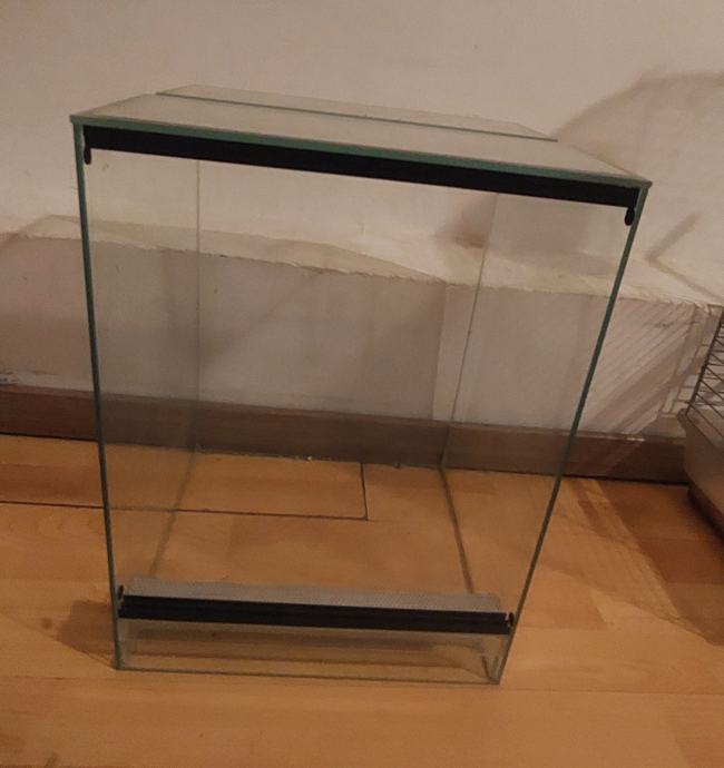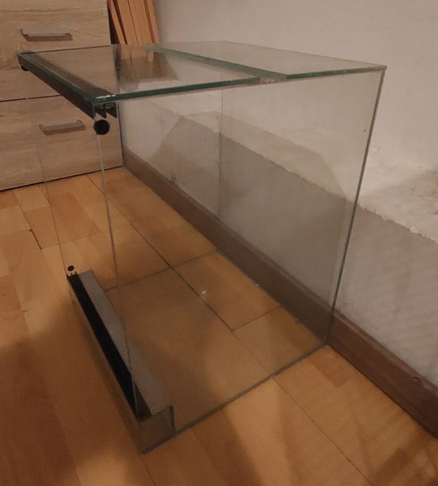 Prodajem terari kao nov ocuvan s dvoje kliznih staklenih vrata i dva metalna otvora za zrak malo ogreban u dnu ali ništa jako strašno