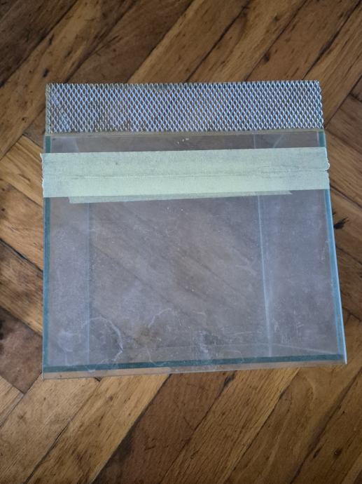 Silikon je parcijelno otišao pa je zaljepljeno trakom.