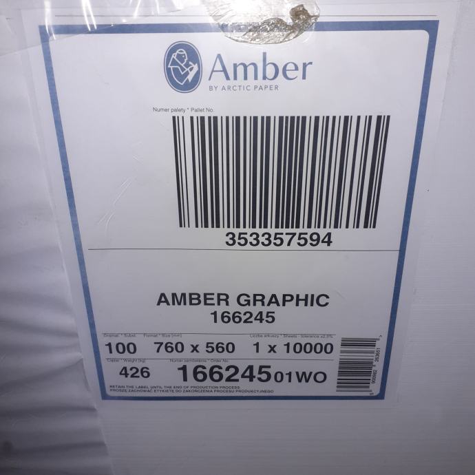 Offset papir 100 gr/m2, format 760x560 mm, 15000 ar.