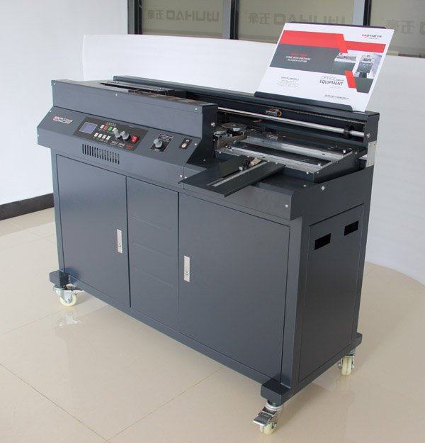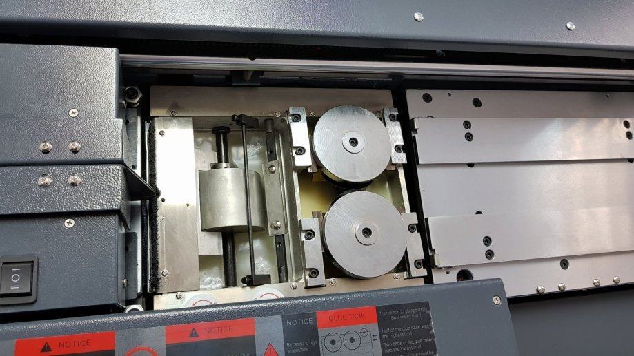 Stroj ima BOČNO LJEPLJENJE i FREZU HRBTA što jamči čvrsto prijanjanje ljepila bez opasnosti da kasnije stranice ispadaju iz korica.