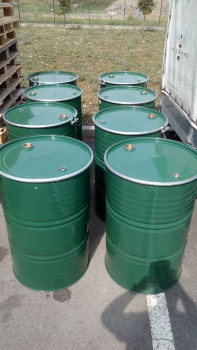 Limene bačve zapremnine 200 L, u njih stane 290 kg, visina je 90 cm, a promjer poklopca 60 cm, odgovaraju prehrambenoj i farmaceutskoj industriji, imaju unutarnji premaz, korištene samo jedanput za transport meda, bez oštećenja. Zapravo nove. Imaju poklopac sa obručem i dodatni mali otvor.