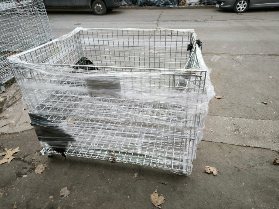 Prodaju se 4 komada višenamjenski preklopni metalni koš - Gitterbox, željezni, pocinčani za transport i skladištenje robe: