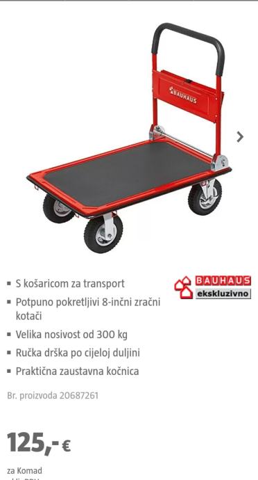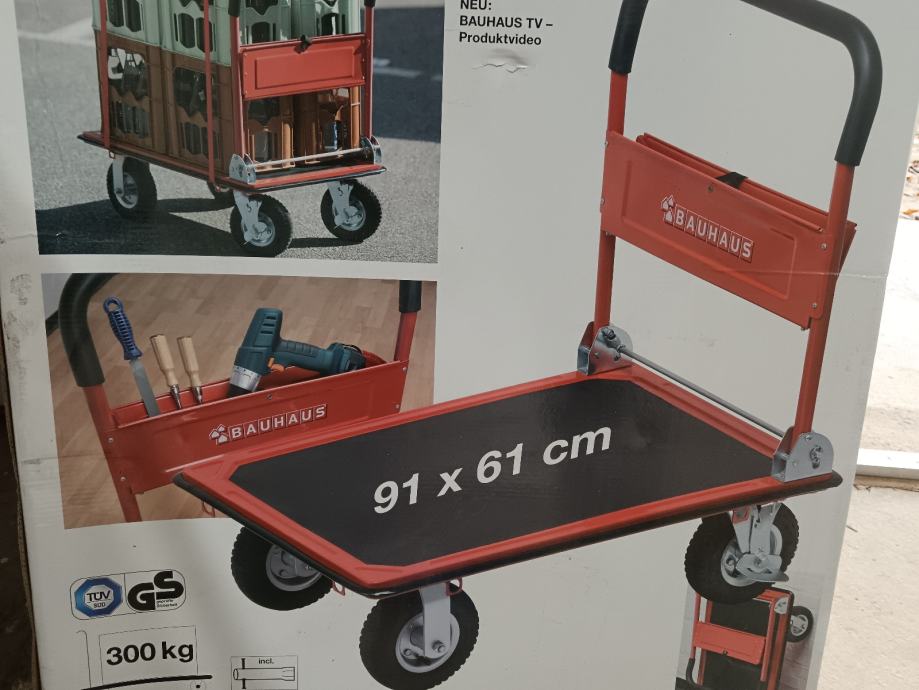 Nova zapakirana kolica nosivosti 300 kg, veliki kotači. U trgovini koštaju 125 eura.