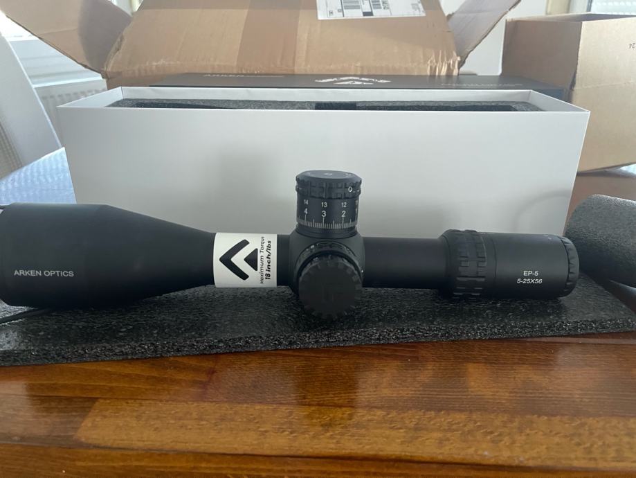 Tip optike ep5 5x25x56. Lovačko / sportska optika. Sa rusan brzo skidajućim prstenovima. Doživotna garancija. Kutija, račun, sjenilo, original poklopci i ugrađena korekcijska vaga.
