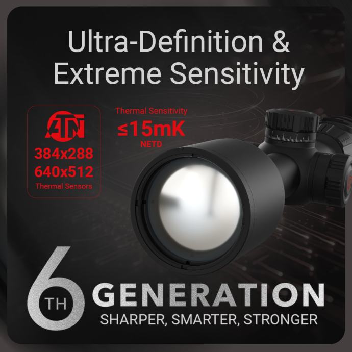 *NOVO* Ponosno predstavljamo najnoviju i najjaču 6. generaciju termovizijskih ciljnika. Generacija 6. nije evolucija Generacije 5. To je potpuno nova, oštrija transformacija i u noj leži ATN-ova revolucionarna SharpIR tehnologija koja redefinira toplinsku jasnoću, analizira i poboljšava svaki piksel u stvarnom vremenu pružajući oštrije, detaljnije toplinske potpise nego ikad prije. Pokreće je procesor 6. generacije i koristi napredne AI značajke i adaptivne performanse kao nikada prije. Generacija 6. ima bolje hlađenje, svjetliju optiku, pametno korištenje energije i brz odziv. Na sve uređaje 6. generacije jamstvo je 60 mjeseci.