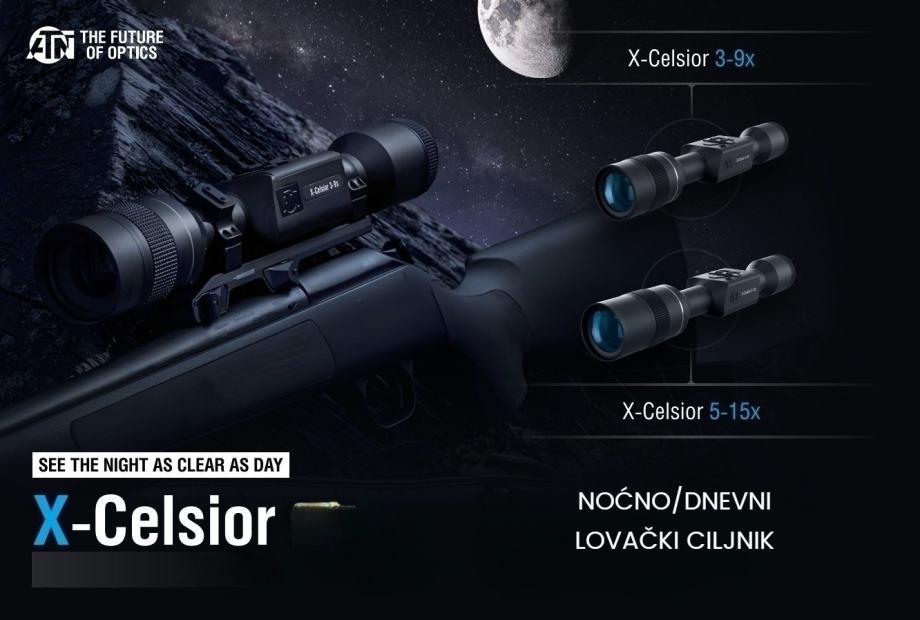 ATN ponosno predstavlja najnoviji digitalni noć/dan ciljnik X-Celsior 5-15x, ultimativni alat za modernog lovca koji zahtjeva preciznost, jasnoću i pouzdanost. S ugrađenim ultraosjetljivim noćnim senzorom koji se može pohvaliti kristalno jasnom rezolucijom od 2688x1944 px, ovaj ciljnik osigurava siguran lov u uvjetima slabog osvjetljenja ili u potpuno mrklom mraku. Zaslon visoke razlučivosti X-Celsior 1280 izoštrava svaki detalj, dok stadiometrički dalinomjer i najnovija ATN predator končanica pružaju vrhunsku točnost. Uz X-Celsior dolazi i ultra jaki IC osvjetljivač dometa do 500 metara. Uz dugotrajnu unutarnju litij-ionsku bateriju s X-Celsiorom možete loviti u kontinuitetu od 10 sati. Otklon od oka je 90mm a video snimanje je 1280 HD. Mikro SD kartica za fotografiranja i snimanja može biti od 4 do 64 Gb. Uređaj je dimenzija 310x55x55mm te teži samo 780 grama. Uz uređaj u kompletu dobivate: jaki Super Max IC osvjeljivač, nosač za IC, punjivu bateriju 18650 + punjač, okularnu gumu, prednju zaštitu, kabl za punjenje uređaja, neoprensku zaštitu za uređaj. Izbornik je na hrvatskom jeziku. Uz uređaj idu Upute na hrvatskom jeziku, jamstvo i krpica za čišćenje leće. Jamstvo na uređaj je 36 mjeseci!