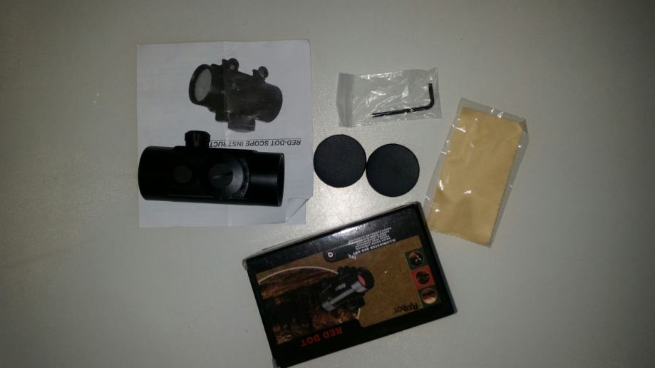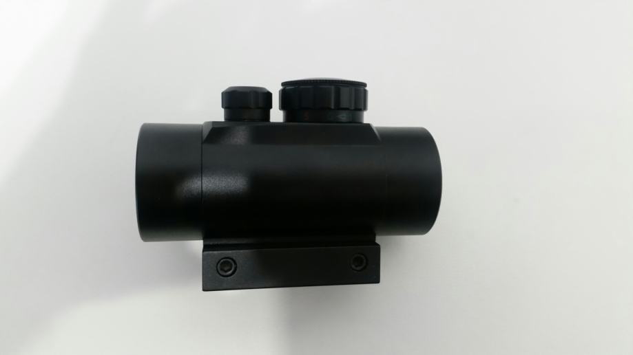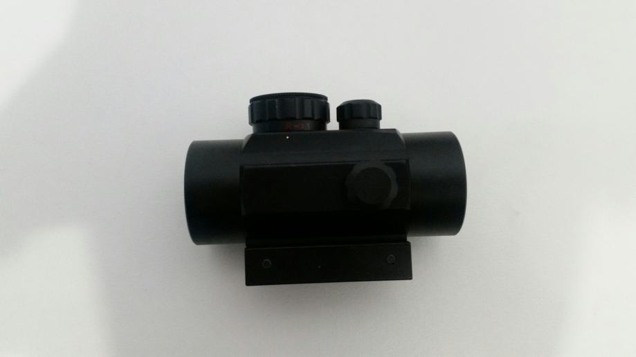 Prodajem brzi ciljnik, mogućnost izbora između crvene i zelene točke. Baterije uključene u cijenu. Hvat nosača 25mm - 18mm.