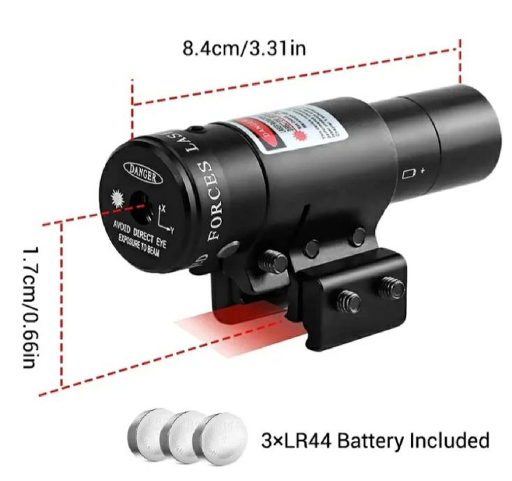 Laser za pušku ili pištolj, u cijenu uključene baterije. Hvat nosača 11mm i 20mm.