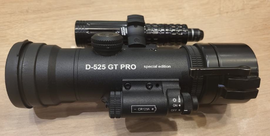 Prodajem noćnu optiku Dedal (Gun-tec) D-525 GT PRO special edition sa crno-bijelim prikazom. Stanje: kao nov, gotovo nekorišten. Uključujući LED iluminator NightFire, Rusan adapter AD540-56 (za optike 50mm) i torbu.