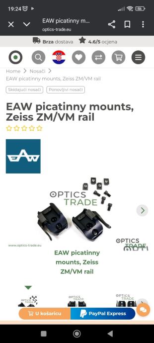 EAW nosači za picatiny/weaver šinu i Zeiss, Docter, Steiner ZM/VM rail