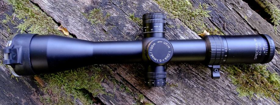 Optika iz naslova, FFP(prva fokalna ravnina), promjer tubusa 34 mm, balistički tureti, itd.. Optika je nova.