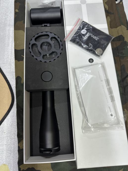 Vrlo kratko je bila na zracnoj pusci iza toga u kutiji sa svom pripadajucom opremom,kojoj dodajem Hawke pro-poklopce okulara