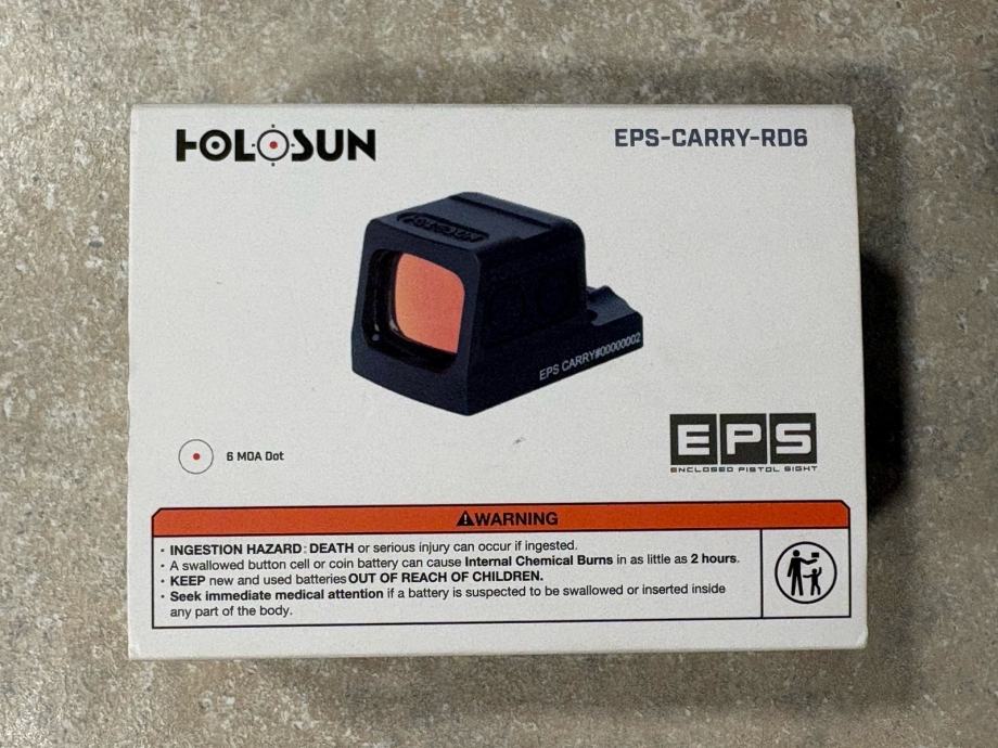 Holosun EPS Carry 6MOA Red, kupljen 2025 god, montiran i isproban u dva navrata na streljani. Zbog astigmatizma mi ne odgovara i moram ga prodati.